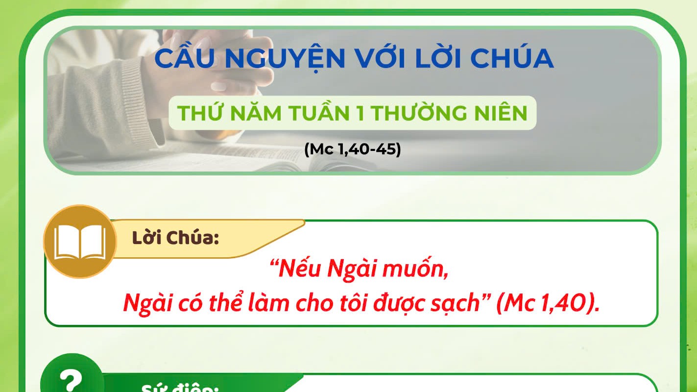 Cầu nguyện với Lời Chúa 12345678910 Cầu nguyện với Lời Chúa: Đức Mẹ Sầu Bi Năm C Cầu nguyện với Lời Chúa: Suy tôn Thánh Giá Năm C Cầu nguyện với Lời Chúa: thứ Bảy tuần 23 thường niên năm C Cầu nguyện với Lời Chúa: thứ Sáu tuần 23 thường niên năm C Cầu nguyện với Lời Chúa: thứ Năm tuần 23 thường niên năm C Cầu nguyện với Lời Chúa: thứ Tư tuần 23 thường niên năm C Cầu nguyện với Lời Chúa: thứ Ba tuần 23 thường niên năm C Cầu nguyện với Lời Chúa: Sinh nhật Đức Trinh Nữ Maria Cầu nguyện với Lời Chúa: Chúa Nhật tuần 23 thường niên năm C Cầu nguyện với Lời Chúa: thứ Bảy tuần 22 thường niên năm C Cầu nguyện với Lời Chúa: thứ Sáu tuần 22 thường niên năm C Cầu nguyện với Lời Chúa: thứ Năm tuần 22 thường niên năm C Cầu nguyện với Lời Chúa: thứ Tư tuần 22 thường niên năm C Cầu nguyện với Lời Chúa: thứ Ba tuần 22 thường niên năm C Cầu nguyện với Lời Chúa: thứ Hai tuần 22 thường niên năm C Cầu nguyện với Lời Chúa: Chúa Nhật tuần 22 thường niên năm C Cầu nguyện với Lời Chúa: thứ Bảy tuần 21 thường niên năm C Cầu nguyện với Lời Chúa: Thánh Gioan Tẩy Giả bị trảm quyết năm C Cầu nguyện với Lời Chúa: thứ Năm tuần 21 thường niên năm C Cầu nguyện với Lời Chúa: thứ Tư tuần 21 thường niên năm C Cầu nguyện với Lời Chúa: thứ Ba tuần 21 thường niên năm C Cầu nguyện với Lời Chúa: thứ Hai tuần 21 thường niên năm C Cầu nguyện với Lời Chúa: Chúa Nhật tuần 21 thường niên năm C Cầu nguyện với Lời Chúa: thứ Bảy tuần 20 thường niên năm C Cầu nguyện với Lời Chúa: Đức Maria Nữ Vương năm C Cầu nguyện với Lời Chúa: thứ Năm tuần 20 thường niên năm C Cầu nguyện với Lời Chúa: thứ Tư tuần 20 thường niên năm C Cầu nguyện với Lời Chúa: thứ Ba tuần 20 thường niên năm C Cầu nguyện với Lời Chúa: thứ Hai tuần 20 thường niên năm C Cầu nguyện với Lời Chúa: Chúa Nhật tuần 20 thường niên năm C 12345678910