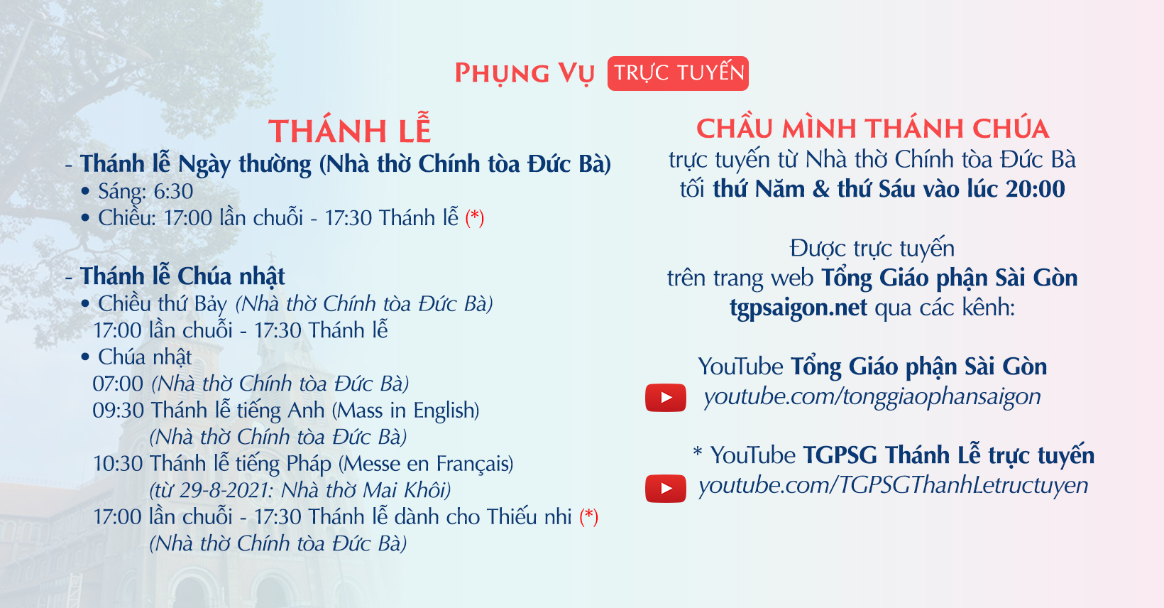 Sinh hoạt Giáo phận 91011121314151617 Thường huấn 2022 của linh mục đoàn Sài Gòn Tổng Giáo phận Sài Gòn: Các Tân Hạt trưởng nhiệm kỳ 2022-2027 Cha Patrick Bernard Philbin: Lễ ‘Đưa Chân’ và Chương trình Tang lễ Thánh lễ tưởng nhớ linh mục Patrick Bernard Philbin, SM Đức Tổng Giám mục Marek Zalewski, Đại Diện Tòa Thánh tại VN dâng thánh lễ tại Gx. Gia Định Tổng Giáo phận Sài Gòn: Buổi gặp gỡ Hiệp Hành ngày 2-7-2022 Tổng Giáo phận Sài Gòn: Phụng vụ trực tuyến từ 2-7-2022 đến 29-7-2022 Thánh lễ truyền chức linh mục ngày 24-6-2022 tại Nhà thờ Chính tòa Sài Gòn Lễ giỗ 343 năm Đức cha Pierre Lambert de la Motte tại Trung tâm Mục vụ TGP Sài Gòn Giáo hạt Tân Sơn Nhì: Thường Huấn lần II - 2022 Tổng Giáo phận Sài Gòn: Phụng vụ trực tuyến từ 4-6-2022 đến 1-7-2022 Buổi tĩnh tâm tháng 5.2022 của linh mục đoàn TGP Sài Gòn Tổng Giáo phận Sài Gòn: Ngày Thế giới Truyền thông Xã hội lần thứ 56 Giáo hạt Sài Gòn-Chợ Quán: đêm thánh ca mừng kính Đức Mẹ Maria và chúc tụng Thiên Chúa 28-5-2022 Tổng Giáo phận Sài Gòn: Phụng vụ trực tuyến từ 28-5-2022 đến 3-6-2022 Tổng Giáo phận Sài Gòn: Phụng vụ trực tuyến từ 21-5-2022 đến 27-5-2022 Đức Tổng Giuse Nguyễn Năng dâng Thánh lễ Tạ ơn mừng phong thánh cha Charles de Foucauld Giáo hạt Thủ Đức: Buổi học hỏi Hội Thánh Hiệp Hành của Hội đồng Mục vụ và Đại diện các đoàn thể 14-5-2022 Tổng Giáo phận Sài Gòn: Phụng vụ trực tuyến từ 14-5-2022 đến 20-5-2022 Đức Tổng Giám mục Giuse chúc mừng đại lễ Vesak 2022 Hạt Gia Định: Linh mục đoàn Tĩnh tâm tháng 5-2022 Hạt Sài Gòn- Chợ Quán: Linh mục đoàn tĩnh tâm tháng 5-2022 Giáo hạt Xóm Mới: Gặp gỡ các Linh mục, Hội đồng Mục vụ và Đại diện các đoàn thể 9-5-2022 Tổng Giáo phận Sài Gòn: Phụng vụ trực tuyến từ 7-5-2022 đến 13-5-2022 Tổng Giáo phận Sài Gòn: Phụng vụ trực tuyến từ 30-4-2022 đến 6-5-2022 Tâm huyết một đời người Tổng Giáo phận Sài Gòn: Phụng vụ trực tuyến từ 23-4-2022 đến 29-4-2022 Thánh lễ tiễn biệt Sư huynh Dominique Đinh Bình An - người viết phần mềm Quản lý Giáo xứ Hiệp Hành: cuộc gặp gỡ giữa các Cộng đoàn Công giáo nước ngoài tại TPHCM Nhà thờ Đức Bà Sài Gòn: Canh thức Vượt Qua năm 2022 91011121314151617
