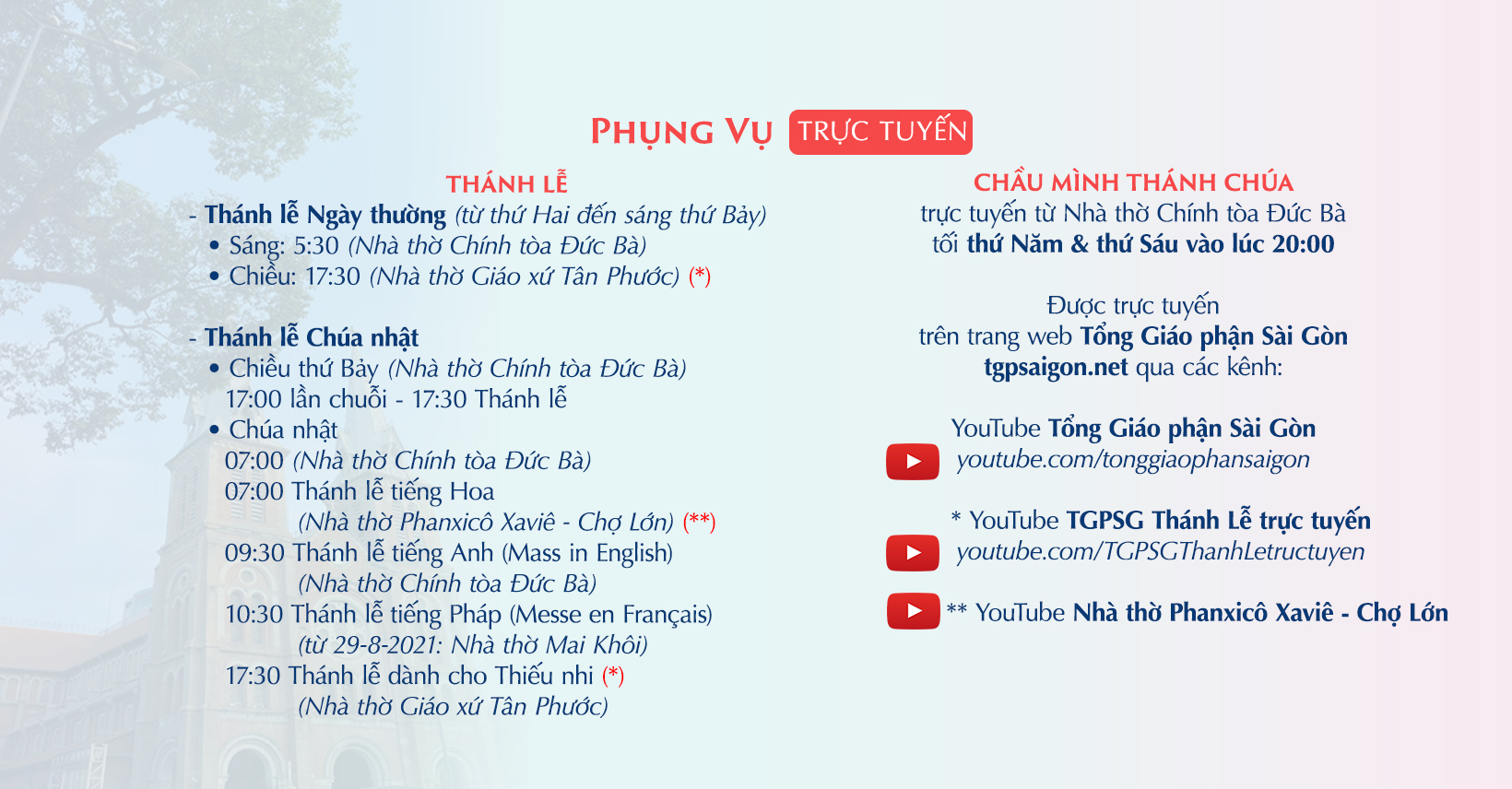 Sinh hoạt Giáo phận 101112131415161718 Tổng Giáo phận Sài Gòn: Phụng vụ trực tuyến từ 18-4-2022 đến 22-4-2022 Nhà thờ Đức Bà Sài Gòn: Chặng đàng Thánh giá và nghi thức suy tôn Thánh giá 2022 Nhà thờ Đức Bà Sài Gòn: Thánh lễ Tiệc ly 2022 Tổng Giáo phận Sài Gòn: Thánh lễ làm phép Dầu năm 2022 Tháng Tư, Tuần Thánh, Đại dịch & Bệnh đặc hữu Tổng Giáo phận Sài Gòn: Phụng vụ trực tuyến Tam Nhật Thánh & Phục sinh 2022 Tổng Giáo phận Sài Gòn: Phụng vụ trực tuyến từ 9-4-2022 đến 13-4-2022 Tổng Giáo phận Sài Gòn: Phụng vụ trực tuyến từ 2-4-2022 đến 8-4-2022 Buổi tĩnh tâm tháng 3.2022 của linh mục đoàn TGP Sài Gòn Thánh lễ truyền chức Phó tế tại Nhà thờ Chính tòa Đức Bà Sài Gòn ngày 28-3-2022 Tổng Giáo phận Sài Gòn: Phụng vụ trực tuyến từ 26-3-2022 đến 1-4-2022 Tổng Giáo phận Sài Gòn: Phụng vụ trực tuyến từ 19-3-2022 đến 25-3-2022 Giáo hạt Tân Sơn Nhì: Tĩnh huấn Mùa Chay ngày 18-3-2022 với chủ đề Hiệp hành Tổng Giáo phận Sài Gòn: Phụng vụ trực tuyến từ 12-3-2022 đến 18-3-2022 Tổng Giáo phận Sài Gòn: Phụng vụ trực tuyến từ 5-3-2022 đến 11-3-2022 Nhà thờ Chính tòa Đức Bà Sài Gòn: Thứ Tư lễ Tro 2-3-2022 Thư mục vụ Mùa Chay và Phục Sinh 2022 Tổng Giáo phận Sài Gòn: Phụng vụ trực tuyến từ 26-2-2022 đến 4-3-2022 Đại diện Tòa Thánh gặp gỡ các tình nguyện viên tu sĩ tại Sài Gòn Thánh lễ trao dây Pallium cho ĐTGM Giuse Nguyễn Năng Tổng Giáo phận Sài Gòn: Phụng vụ trực tuyến từ 19-2-2022 đến 26-2-2022 Giáo hạt Phú Nhuận: Gặp gỡ đầu xuân 2022 Tổng Giáo phận Sài Gòn: Phụng vụ trực tuyến từ 12-2-2022 đến 19-2-2022 Văn phòng Đặc trách Tu sĩ: Thư mời tham dự cuộc hội ngộ ngày 20-2-2022 tại TTMV TGP Sài Gòn Thánh lễ An táng cố linh mục Giuse Phạm An Ninh ngày 5-2-2022 Tổng Giáo phận Sài Gòn: Phụng vụ trực tuyến từ 5-2-2022 đến 12-2-2022 Thánh lễ Tết Nhâm Dần - 2022 tại Phi Luật Tân trong thời đại dịch Covid Nhà thờ Chính tòa Đức Bà: Thánh lễ Giao thừa năm Nhâm Dần 31-1-2022 Tổng Giáo phận Sài Gòn: Phụng vụ trực tuyến từ 29-1-2022 đến 5-2-2022 Tuần Tĩnh tâm năm 2021 của linh mục đoàn Tổng Giáo phận Sài Gòn 101112131415161718
