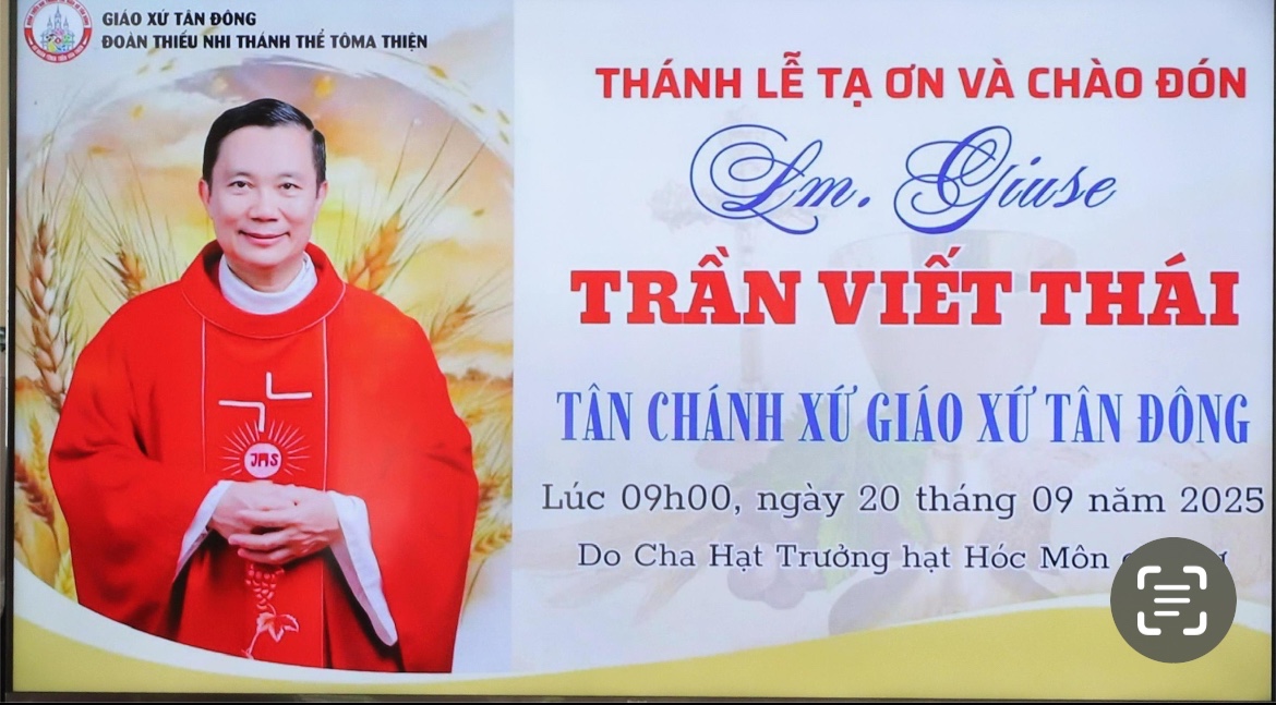 Sinh hoạt Giáo xứ 456789101112 Giáo xứ Vĩnh Hòa: Mừng lễ bổn mạng ca đoàn Thiên Thần - 2025 Ban Caritas giáo xứ Tân Phú mừng bổn mạng Thánh Vinh Sơn Phaolô Thánh lễ kính các Tổng Lãnh Thiên Thần, mừng bổn mạng Ban Lễ Sinh giáo xứ Công Lý Giáo xứ Nhân Hòa: Thánh lễ kính Các Tổng Lãnh Thiên Thần, bổn mạng Ban Trật tự và Ban Truyền thông Giáo xứ Gò Mây: Thánh lễ mừng bổn mạng Ca đoàn Thiên Cung Thánh lễ giỗ 100 ngày Cha giáo Phêrô Kim Long Giáo xứ Thánh Phaolô: Thánh lễ gieo mầm Tin Mừng - Niềm hạnh phúc cho anh chị em lương dân Giáo xứ Bùi Phát: Thánh lễ Tạ ơn, mừng bổn mạng và ra mắt Xứ đoàn Thiên Thần Raphael 2025 Thánh lễ bổn mạng giáo xứ Vinh Sơn Phaolô: Thắp sáng ngọn lửa truyền giáo Giáo xứ An Bình mừng Bổn mạng Xứ đoàn Têrêsa, ca đoàn Seraphim và vui Trung Thu Giáo Xứ Thiên Thần Hồng Ân 50 Năm - Cùng Nhau Cắm Rễ Trong Đức Kitô Giáo xứ Hà Đông: Thánh lễ cầu nguyện cho Cha cố Phêrô Vêrôna Chu Quang Minh - SJ Cùng “Restart” hy vọng trong Đức Kitô - Cầu nguyện cùng Đức Thánh Cha tại Nhà thờ Tân Quy Giáo xứ Tân Phú cầu nguyện cho Cha cố Giuse Lê Đình Quế Minh - nguyên chánh xứ Thánh Tích Thánh Piô Năm dấu đến với Giáo xứ Thánh Martino de Porres - hạt Gia Định Giáo xứ Thạch Đà: Thánh lễ kính Thánh Matthêu, mừng Bổn mạng giáo khu Matthêu Giáo xứ Bình Minh: Thánh lễ nhận sứ vụ tân quản nhiệm của linh mục Gioan Baotixita Lê Quốc Đạt Giáo xứ Tân Hưng-Xóm Mới kỷ niệm 21 năm thành lập Ban Mục Vụ Giới Trẻ Giáo xứ Thị Nghè: Chương trình Thánh ca Semi Ballad số 7 Thánh lễ nhậm chức của linh mục Giuse Trần Viết Thái, tân chánh xứ Tân Đông Thánh lễ kính Thánh Matthêu Tông đồ, bổn mạng Ban Truyền thông Giáo xứ Phú Hòa Thánh lễ cầu nguyện cho Cố Linh mục Phêrô Vêrôna Chu Quang Minh Giáo xứ Tân Trang: Thánh lễ giỗ 10 năm Cha cố Giuse Phan Du Vinh Giáo xứ Bình An khai giảng năm học Giáo lý 2025-2026 Giáo xứ Mông Triệu khai giảng năm học Giáo Lý 2025-2026 Thánh lễ nhậm chức tân chánh xứ Lộc Hưng của linh mục Phêrô Nguyễn Văn Hành Giáo xứ Tân Phước: Lễ Đức Mẹ Sầu Bi - Thăm và cử hành các bí tích cho bệnh nhân Lễ Đức Mẹ Sầu Bi, mừng bổn mạng Hội Các Bà Mẹ Công Giáo giáo xứ Hiển Linh Giáo xứ Công Lý: Khai giảng năm học Giáo lý 2025-2026 Thánh lễ Suy Tôn Thánh giá, mừng bổn mạng Cộng đoàn Lòng Chúa Thương Xót giáo xứ Nhân Hòa 456789101112