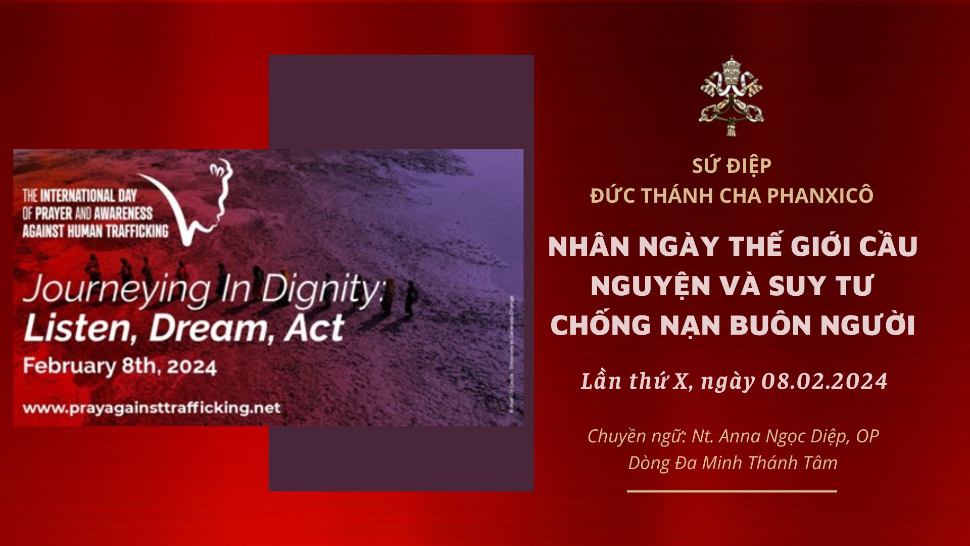 Sứ điệp 123 Sứ điệp của Đức Lêô XIV gởi tới Hội nghị Quốc tế về Triết học "Giờ đã đến", một cách đọc lại sứ điệp của Đức Giáo hoàng Phaolô VI gửi các phụ nữ Sứ điệp ngày Giới trẻ Thế giới năm 2025 Đức Thánh Cha: Chúng ta phải sống điều mình tin Các Sứ điệp Phục sinh Urbi et Orbi của Đức Thánh Cha Sứ điệp của Đức Thánh Cha Phanxicô nhân Ngày thế giới cầu nguyện và suy tư chống nạn buôn người lần thứ XI (08/02/2025) Sứ điệp Đức Thánh Cha gửi Hội nghị Thượng đỉnh Hành động về Trí tuệ Nhân tạo năm 2025 Sứ điệp Ngày Thế giới Truyền giáo năm 2025 - Những Người Truyền Giáo của Niềm Hy Vọng giữa muôn dân Sứ điệp của Đức Giáo Hoàng Phanxicô nhân dịp mở cửa lại Nhà thờ Đức Bà Paris ngày 07/12/2024 Hội thảo Sứ điệp Truyền giáo của Đức Thánh Cha Phanxicô năm 2024 Sứ điệp Ngày Thế giới Truyền giáo năm 2024 - Hãy đi và mời mọi người đến dự tiệc Sứ điệp Đức Thánh Cha gửi giới trẻ nhân kỷ niệm 5 năm Tông huấn Christus Vivit Sứ điệp gửi người Muslim nhân Tháng Ramadan và Đại lễ ‘Id al-Fitr năm 1445 H. / 2024 A.D Sứ điệp Đức Thánh Cha gửi tới tham dự viên Hội thảo nhân kỷ niệm 750 ngày mất của Thánh Tôma Aquino Sứ điệp Đức Thánh Cha cho Ngày Thế giới Trẻ em lần thứ I, năm 2024: “Này đây Ta đổi mới mọi sự” (Kh 21,5) Đức Thánh Cha: Giáo dục là một quyền, không ai bị loại trừ Sứ điệp Đức Thánh Cha gửi Phiên họp thứ 47 của Quỹ Quốc tế về Phát triển Nông nghiệp năm 2024 Sứ điệp Đức Thánh Cha nhân Ngày thế giới cầu nguyện và suy tư chống nạn buôn người năm 2024 Sứ điệp của ĐTC Phanxicô cho Mùa Chay 2024 Sứ điệp Đức Thánh Cha gửi tới Diễn đàn Kinh tế Thế giới, Davos 2024 Đức Thánh Cha gửi sứ điệp đến Diễn đàn Kinh tế Thế giới Davos 2024 Sứ điệp của Đức Phanxicô được ký bởi ĐHY Pietro Parolin, Quốc Vụ Khanh Tòa Thánh, gửi các Chủng Sinh Pháp Sứ điệp Đức Thánh Cha gửi Đại hội của Tổ chức Luật Phát triển Quốc tế ĐTC gởi sứ điệp cho Ngày Thế giới Ông bà và Người cao tuổi lần thứ ba Toàn văn Sứ điệp Đức Thánh Cha cho Ngày Thế giới Người nghèo lần thứ 7 năm 2023 Sứ điệp của Đức Thánh Cha nhân dịp giới thiệu Hiệp ước Gia đình Toàn cầu Sứ điệp của Đức Thánh Cha gửi đến buổi ra mắt Hiệp ước Toàn cầu về Gia đình Sứ điệp của ĐTC cho Ngày Thế Giới Cầu nguyện cho việc Chăm sóc Thụ tạo Sứ điệp của Đức Thánh Cha nhân Ngày Thế giới Truyền thông Xã hội Giáo hội tiếp cận với những vấn đề đang gây nhiễu trong không gian mạng dưới ánh sáng của các sứ điệp truyền thông Sứ điệp của ĐTC cho ngày Thế giới Người Di dân và Người Tị nạn lần thứ 109 (2023) 123
