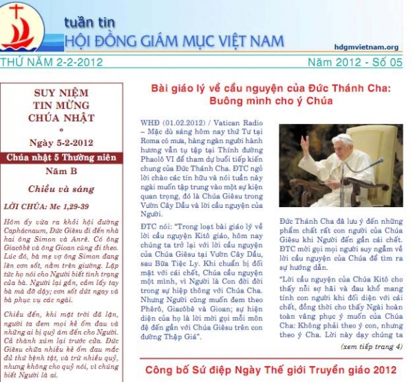 Tin Giáo hội Việt Nam 464748495051525354 Lễ Kim khánh giáo phận Đà Nẵng Tuần tin Hội đồng Giám mục Việt Nam số 18/2013 Tuần tin Hội đồng Giám mục Việt Nam số 17/2013 Tuần tin Hội đồng Giám mục Việt Nam số 16/2013 Tuần tin Hội đồng Giám mục Việt Nam số 15/2013 Nhật ký Hội nghị Thường niên kỳ I-2013 Hội đồng Giám mục Việt Nam (1–5/4/2013): Ngày thứ ba Giáo phận Xuân Lộc: Lễ tấn phong tân Giám mục Phụ tá Thánh lễ tấn phong Giám mục Đức Tân Giám Mục Giuse tại Giáo phận Xuân Lộc Biên bản Hội nghị Thường niên kỳ I-2013 Hội đồng Giám mục Việt Nam Chúc mừng Đức tân Giám mục Giuse Đinh Đức Đạo Đính chính Phỏng vấn Đức cha Cosma Hoàng Văn Đạt về Hội nghị Thường niên kỳ I-2013 Hội đồng Giám mục Việt Nam Phỏng vấn Đức cha Gioan Maria Vũ Tất về đề nghị thiết lập giáo phận Hà Tuyên Tuần tin Hội đồng Giám mục Việt Nam số 14/2013 Nhật ký Hội nghị Thường niên kỳ I-2013 Hội đồng Giám mục Việt Nam (1–5/4/2013): Ngày thứ hai Nhật ký Hội nghị Thường niên kỳ I-2013 Hội đồng Giám mục Việt Nam (1–5/4/2013): Ngày thứ nhất Nhật ký Hội nghị Thường niên kỳ I-2013 Hội đồng Giám mục Việt Nam (1–5/4/2013): Khai mạc Nhật ký Hội nghị Thường niên kỳ I-2013 Hội đồng Giám mục Việt Nam (1–5/4/2013): Khai mạc [1] Hội đồng Giám mục Việt Nam họp Hội Nghị Thường niên Kỳ I-2013 Tòa Giám mục Bắc Ninh: thông báo về việc giả danh linh mục Thư của Hội đồng Giám mục Việt Nam nhận định và góp ý sửa đổi Hiến pháp Tuần tin Hội đồng Giám mục Việt Nam số 13/2013 Tuần tin Hội đồng Giám mục Việt Nam số 12/2013 Thư của Đức TGM Chủ tịch Hội đồng Giám mục Việt Nam gửi Cộng đồng Dân Chúa tại Việt Nam Thư của Đức TGM Chủ tịch Hội đồng Giám mục Việt Nam kính gửi Đức Thánh Cha Phanxicô Giáo phận Xuân Lộc: Thông báo về Lễ tấn phong Giám mục Phụ tá Tuần tin Hội đồng Giám mục Việt Nam số 11/2013 Tuần tin Hội đồng Giám mục Việt Nam số 10/2013 Tuần tin Hội đồng Giám mục Việt Nam số 09/2013 Đức Thánh Cha Bênêđictô XVI bổ nhiệm Tân giám mục Phụ tá giáo phận Xuân Lộc 464748495051525354