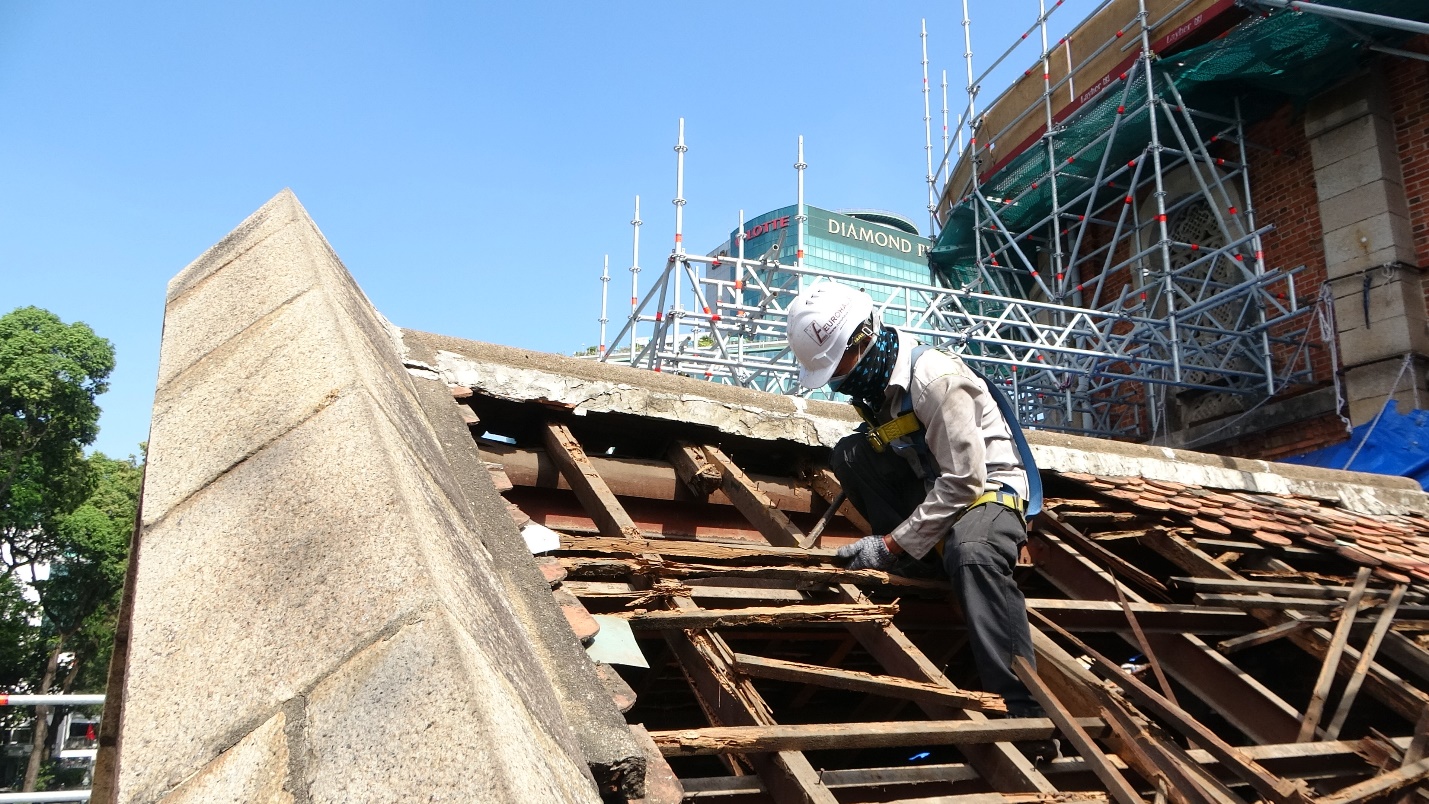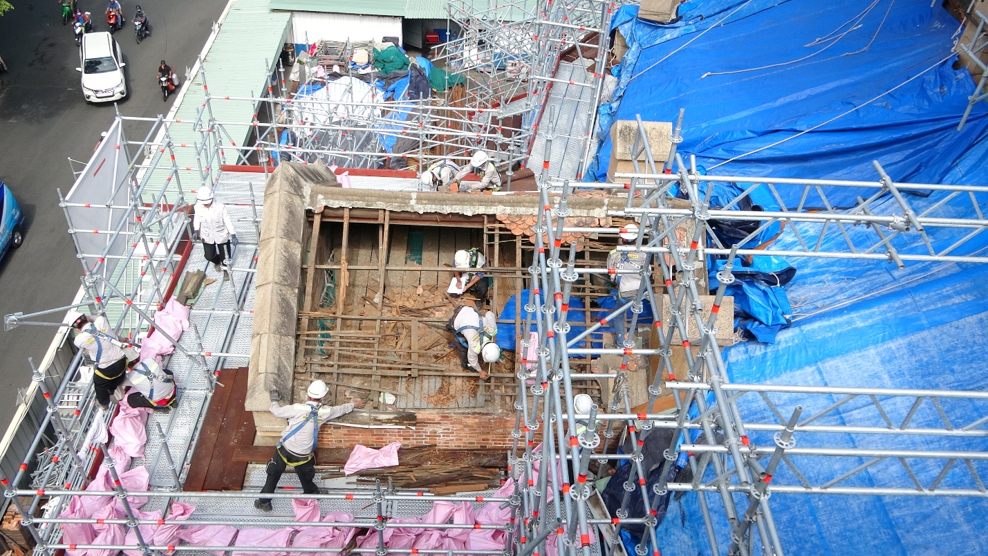 Trùng tu Nhà Thờ Đức Bà Sài Gòn: Tháo ngói vảy cá mái B1